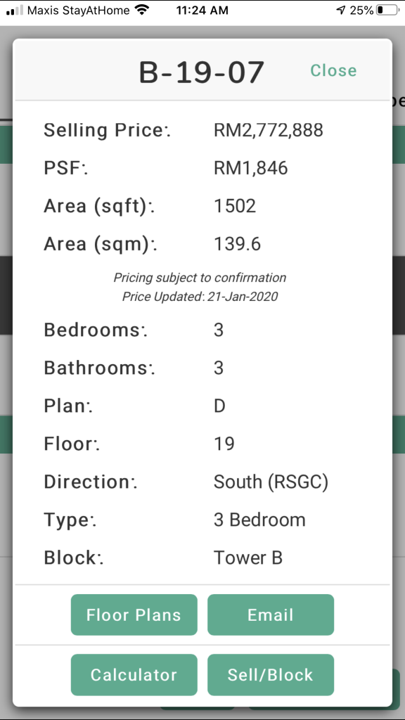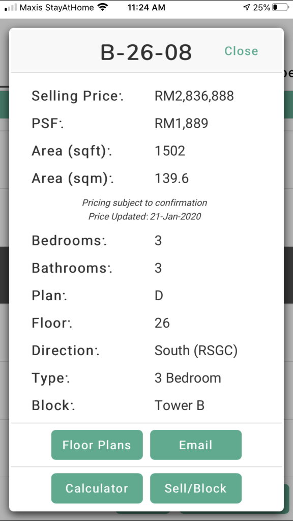 Attached herewith with the pricing, layout and pricing of Aria Residences, I have pick few units price for your references, the price is before 20% discounts.